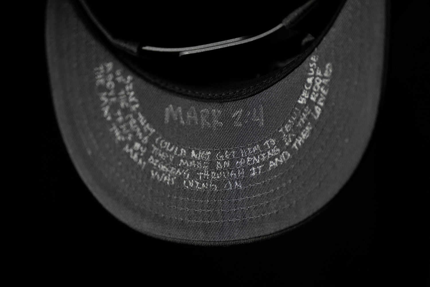 The design of your hat is connected to a specific Bible Verse. As you wear it, take time to memorize and meditate in the verse. When you put it on, read the verse located under the bill of the hat. When you take it off, reflect on the truth it carries.